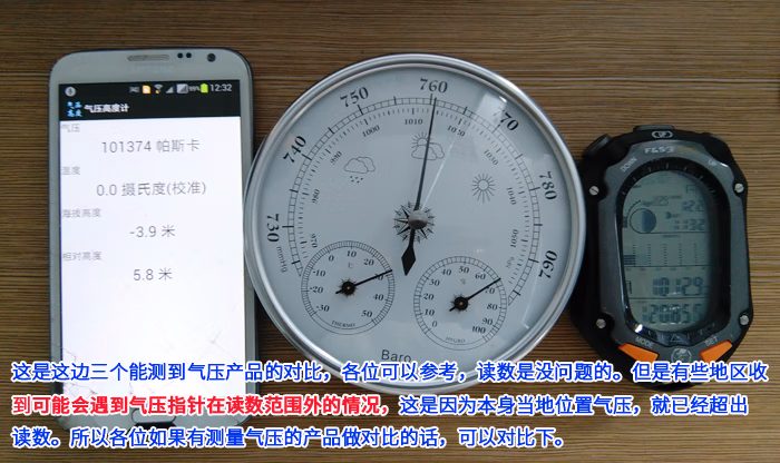 测量范围:气压960~1060hPa(百帕) ,温度-30~50℃ ,湿度0~Rh; 特别提醒高原地区或山区的朋友,一定要确认你所在地的大气压在我们气压表的测量范围内。大气压低于960hpa或高于1060hpa将会出现指偏往左或右无法测量的情况。